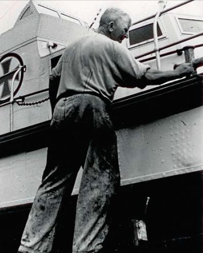 Das heutige Bild stammt aus dem Album von Gerd Hamczyk. Es zeigt seinen Großvater Johann Friedrich (Fidi) Rass auf dem Rettungsboot "Norderney". Seine Hose hatte Rass selbst aus Segeltuch genäht. Von Einsätzen der Deutschen Gesellschaft zur Rettung Schiffbrüchiger (DGzRS) auf Norderney existieren Logbücher von Johann Fidi, der 1890 geboren wurde. So wird über eine Rettungsfahrt am 1. Dezember 1936 mit dem Motorboot "Bremen" berichtet: Vier Mann wurden vom holländischen Fischkutter "Trücojo" gerettet, der unter Kapitän Robert Emmelod fuhr. Das Boot war bei sehr schwerer See und einem Nordwestwind von Stärke zehn bis zwölf in Seenotgeraten. Besetzt war das Rettungsboot "Bremen" mit Vormann Johann Fidi Rass sowie Harm Fischer, Heinrich Bogena, August Rass, Emmius Pauls und Gerhard Rass. Für den Einsatz, der von 9 bis 11.30 Uhr dauerte, erhielt jeder Mann eine Prämie von 65 Mark. Im Logbuch 1929 wird über eine Übungsfahrt mit dem Motorboot "Bremen" und dem Ruderboot "Fürst Bismarck" berichtet. Im Einsatz waren neben dem Vormann Rass auch Heinrich Bogena, Focke Bogena, Wilhelm Rass, Nanno Pauls, Emmius Pauls, Albert Bojunga, August Rass, Gustav Bodenstab, Johannes Klausen, Gerhard Rass, Eduard Jenssen, Johann Wichmann, Gent Visser, Harm Fischer und Johann Hönnig. Sie erhielten 33 Mark pro Mann, für jedes Pferd gab es 18 Mark, wie im Logbuch nachzulesen ist.