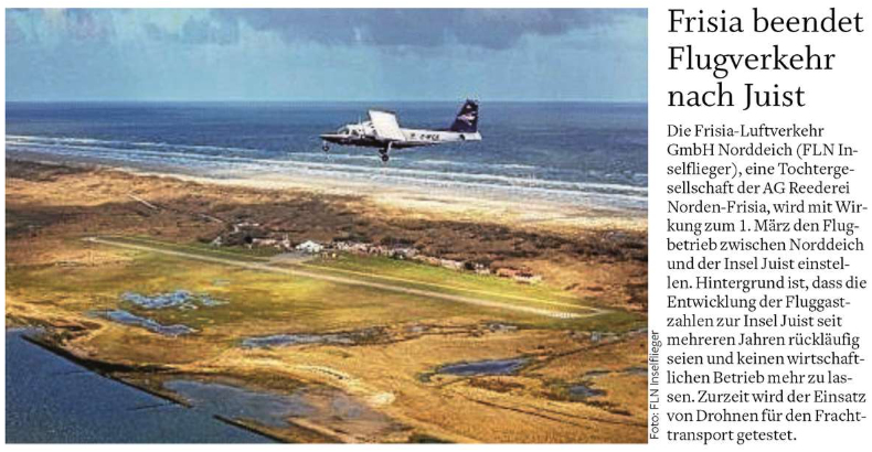 Weitere Infos Frisia beendet Flugverkehr nach Juist. (NBZ 29.01.2025)