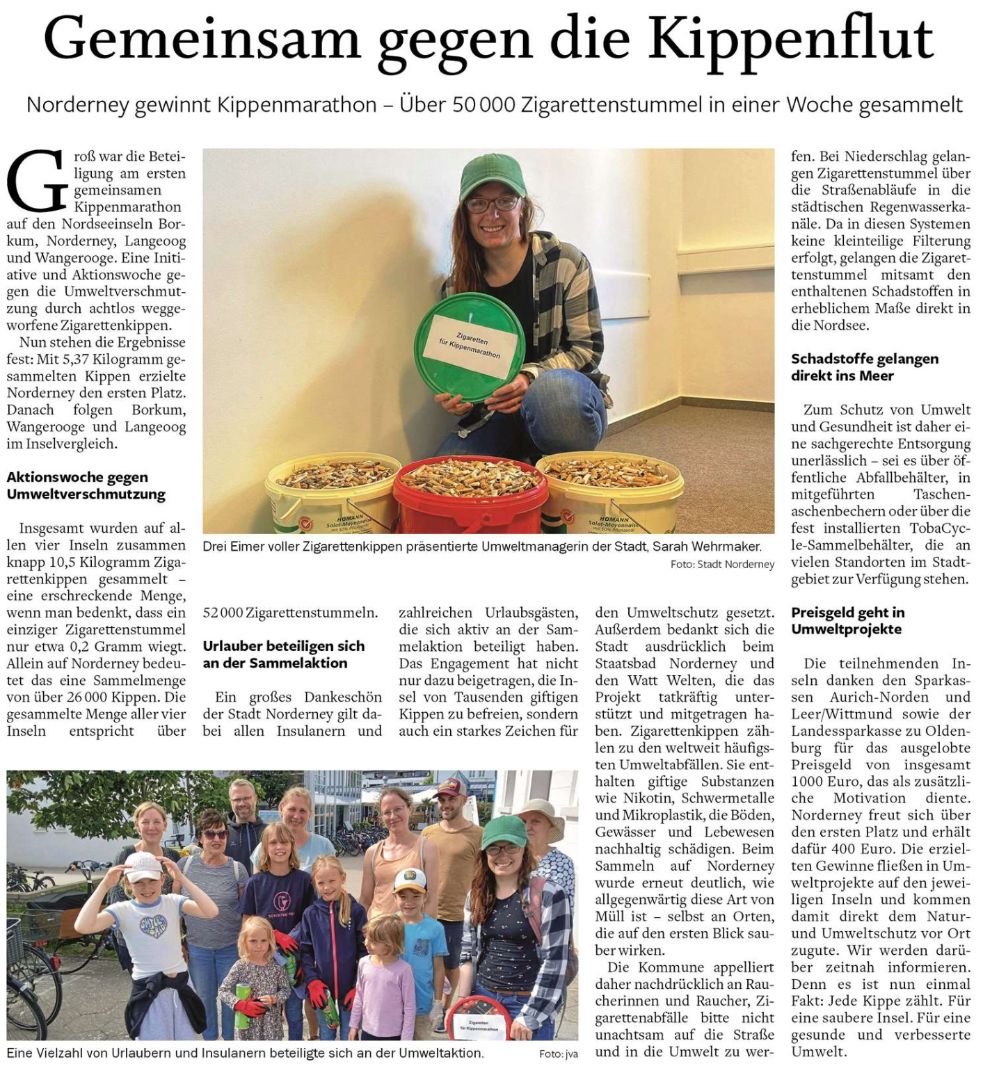 Norderney gewinnt bei der ersten gemeinsamen Aktionswoche gegen Umweltverschmutzung den Kippenmaraton.