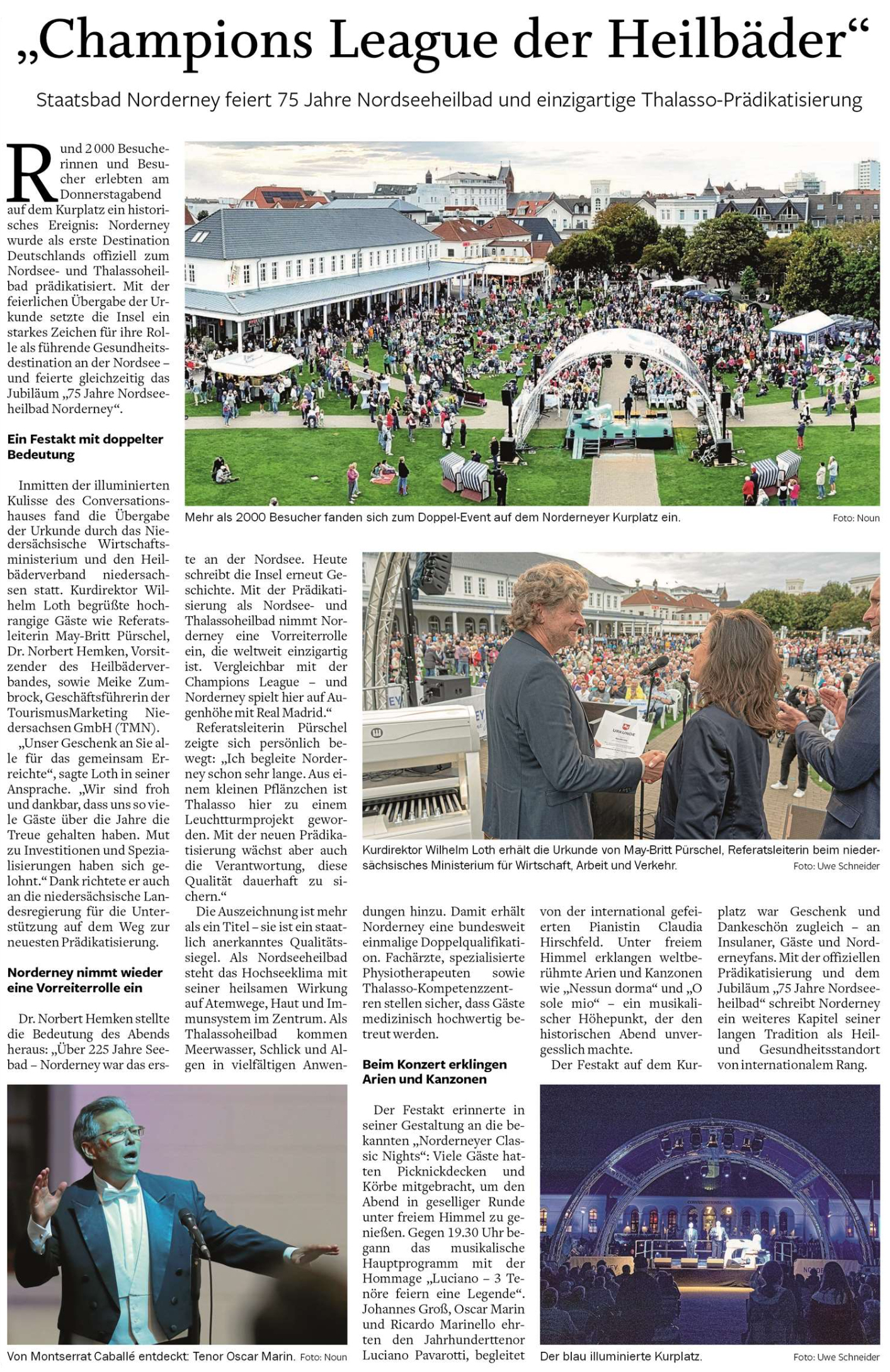 Als erste Destination in Deutschland erhält Norderney die offizielle Prädikatisierung als Nordsee- und Thalassoheilbad.